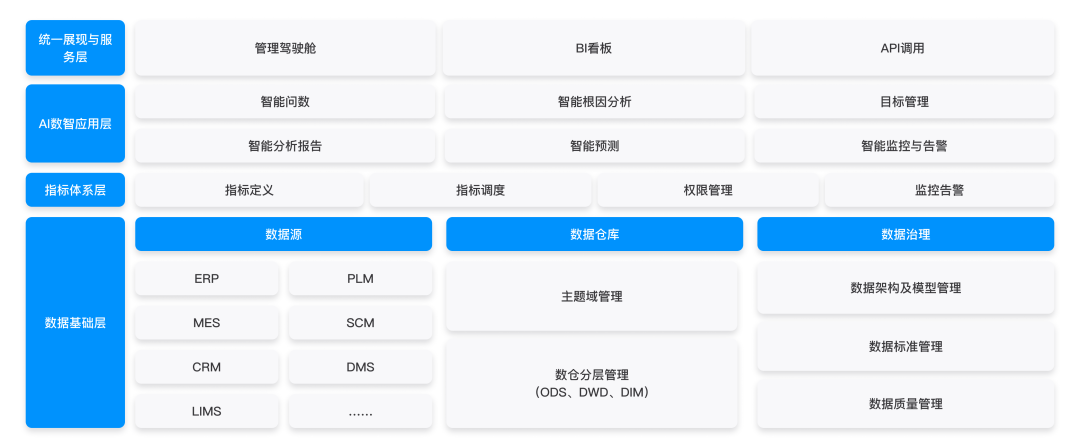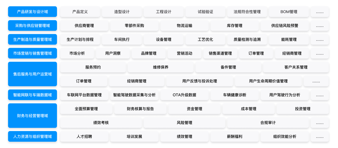 覆盖产品、客户、供应链、制造、质量、设备、财务、人力等全业务域的数据管理